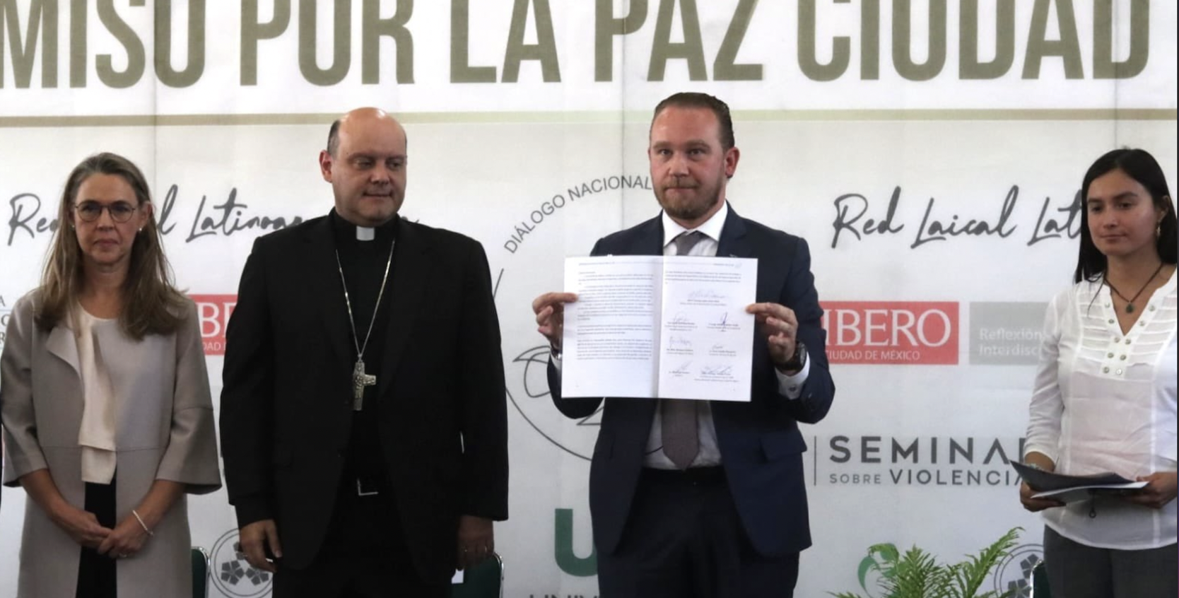 Ciudad de México, 15 de abril de 2024 – Hoy se llevó a cabo la firma del «Compromiso por la Paz: Estrategias de Política Pública para la Paz de la Ciudad de México», en un evento organizado por la Conferencia del Episcopado Mexicano, la Provincia Mexicana de la Compañía de Jesús, la Conferencia de Superiores Mayores de Religiosos de México, la Dimensión Episcopal para los Laicos, universidades, iglesias y diversas Organizaciones de la Sociedad Civil.